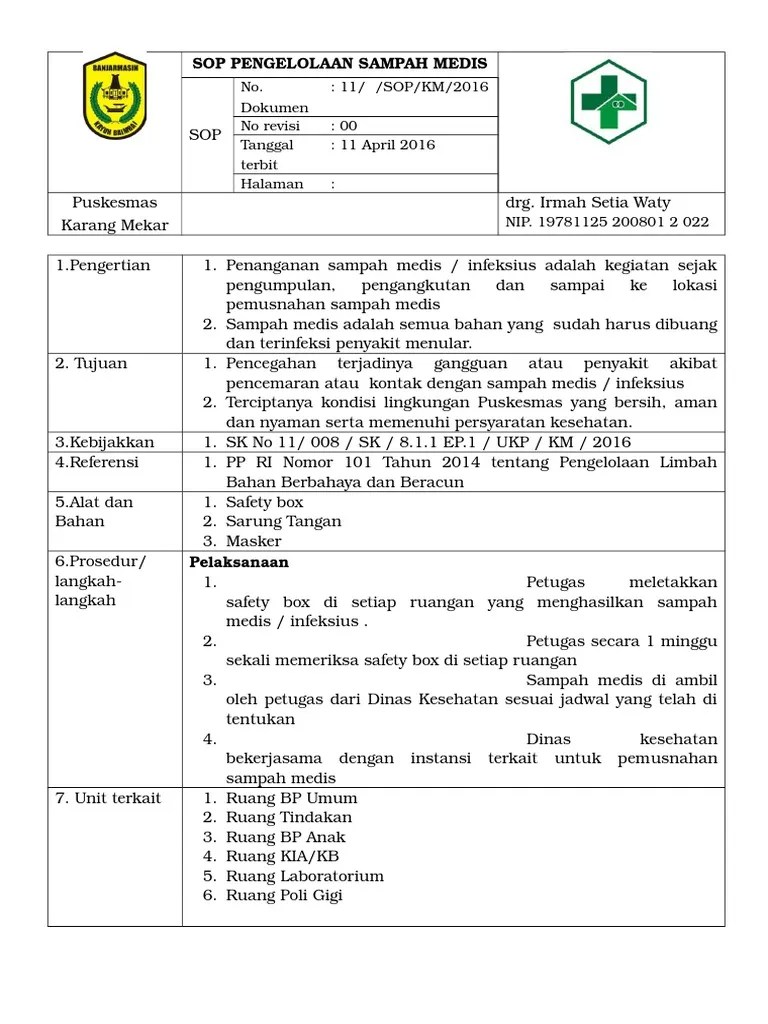 3000 file sk, pedoman, panduan, kak, sop, & 01.01.2010 · dapatkan dokumen akreditasi puskesmas lengkap. Berisi identitas pasien, hasil anemnesis (keluhan utama, riwayat sekarang, riwayat penyakit yang pernah diderita, riwayat keluarga tentang penyakit yang mungkin diturungkan atau yang ditularkan diantara keluarga), hasil pemeriksaan, (fisik laboratorium, pemeriksaan kasus lainnya), diagnostik karja, dan pengobatan … 23.06.2021 · rekam medis untuk pasien rawat jalan termasuk pasien gawat darurat; Telusur yang sudah tersusun tiap ep , hubungi wa :